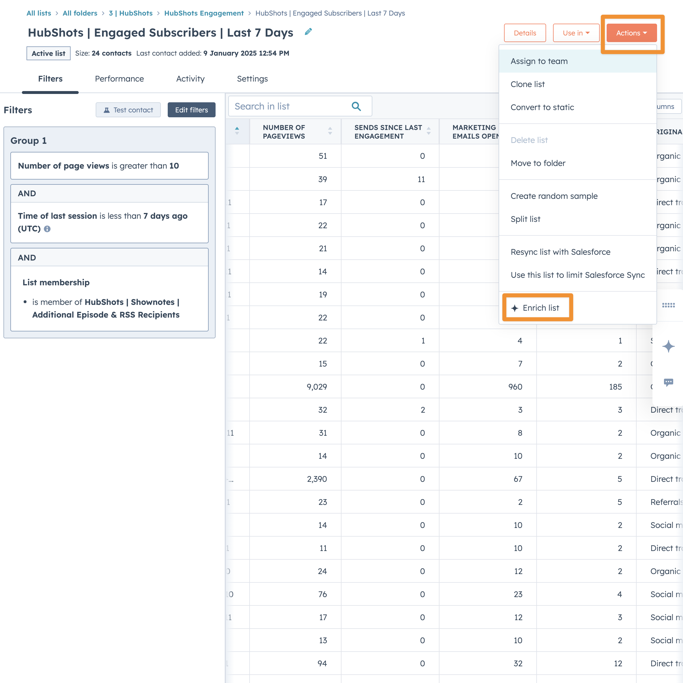 HubSpot Enrich List