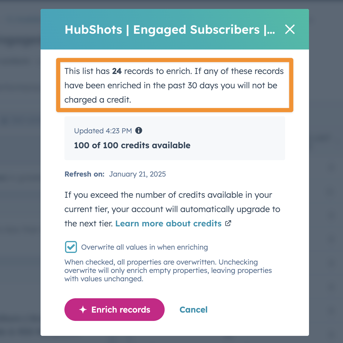 Reminder: Little tweaks to enriching data keep rolling out. eg you can enrich a List in HubSpot.
