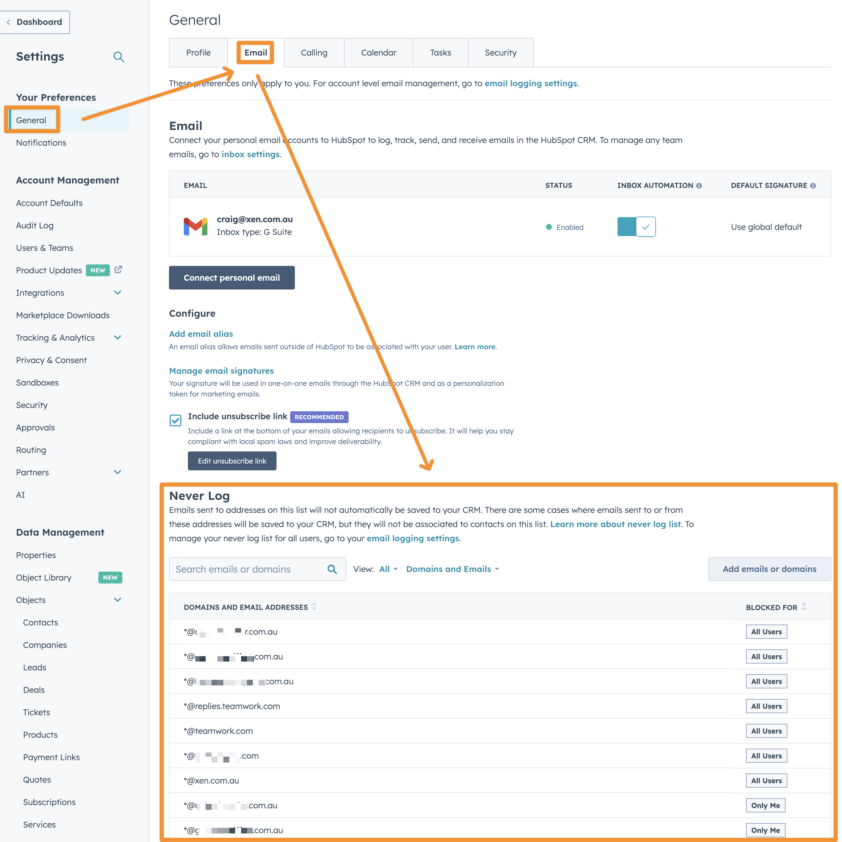 A reminder about setting your NeverLog settings - so that you don't accidentally log sensitive (or noise) emails into your HubSpot portal.