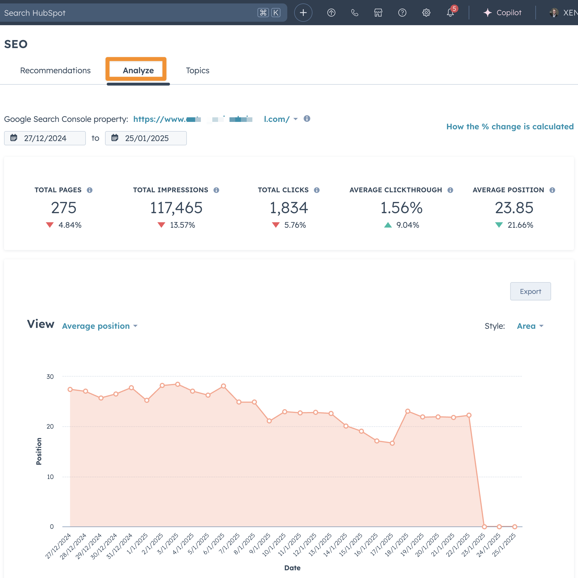 Connecting your Google Search Console account into HubSpot is handy for showing top level organic results from the SEO tool.