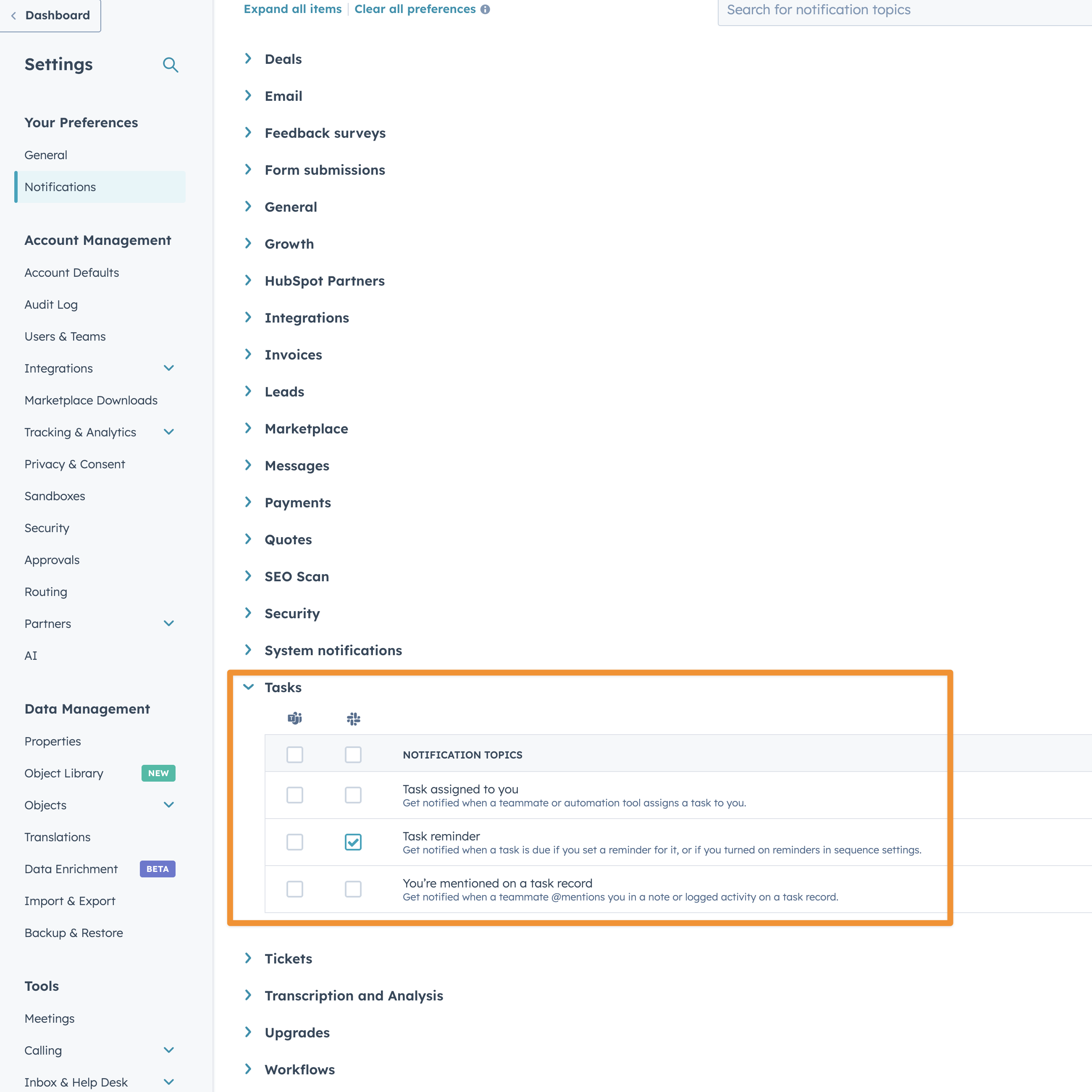 A reminder about getting Slack reminders in HubSpot.