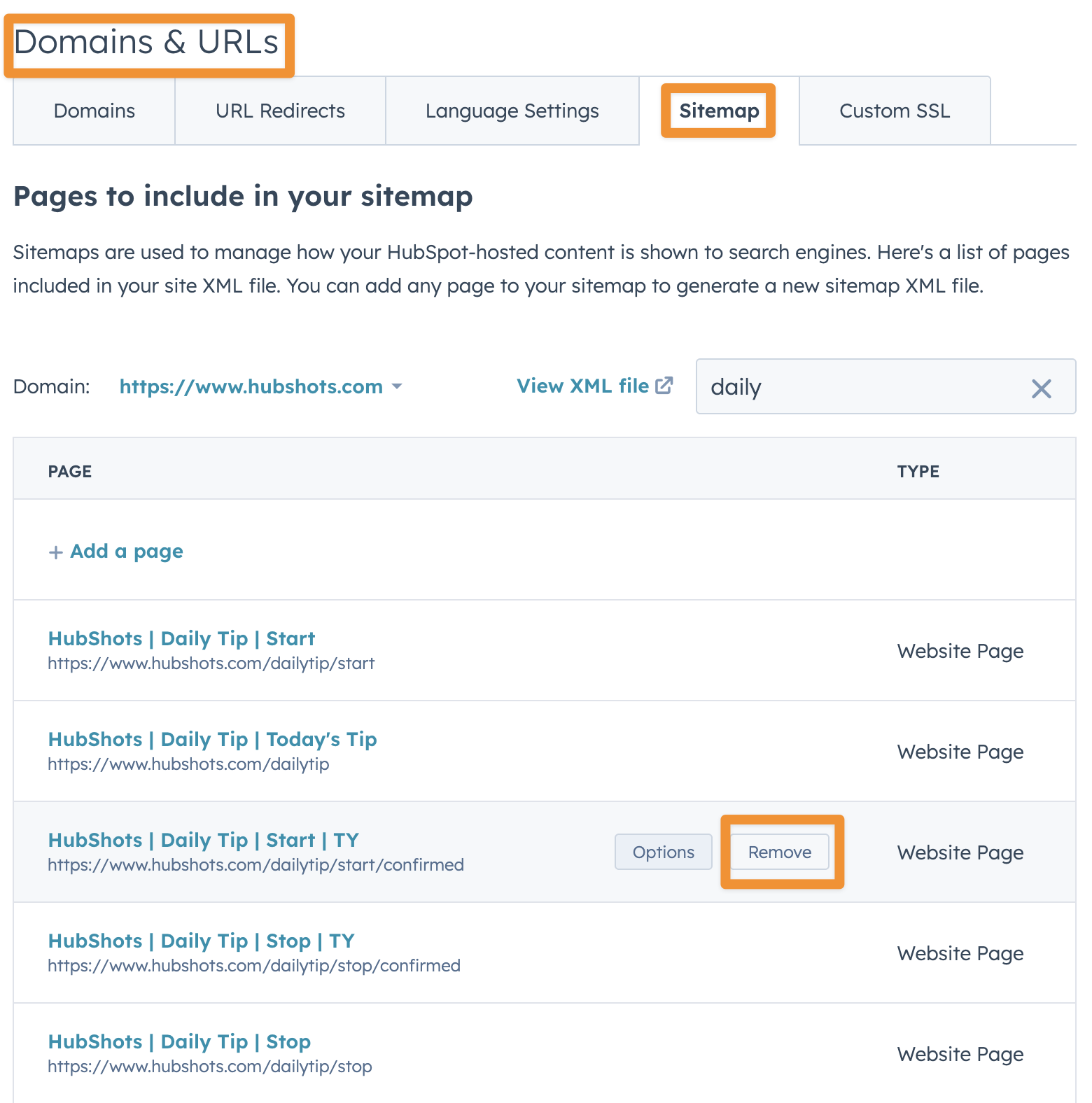 It's easy to remove pages from your XML Sitemap in HubSpot.
