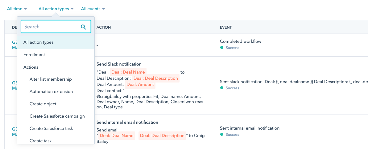 New Action types filtering in most workflows (everything except Contact workflows at the moment):